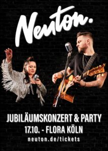 Was vor 10 Jahren als Akustikduo begann, ist zu einem der meistgebuchten Live-Acts in Deutschland gewachsen. Nach über 500 gemeinsamen Auftritten laden Anna und Tobias von NEUTON am 17. Oktober zu ihrem großen Jubiläumskonzert im Flora-Palais ein. Mit Band, Tänzern, Special Guest, vielen Geschichten und einer großen Aftershow-Party lassen sie das letzte Jahrzehnt Revue passieren.